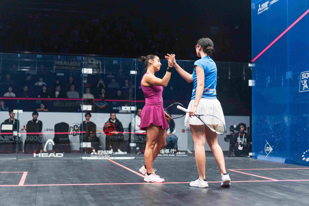 The Egyptian now has another record in her collection, reaching 100 PSA Squash Tour wins after just 129 matches, though she will be disappointed with how the record was confirmed tonight, with Abbas shaking hands in game two after an awkward lunge in game one.